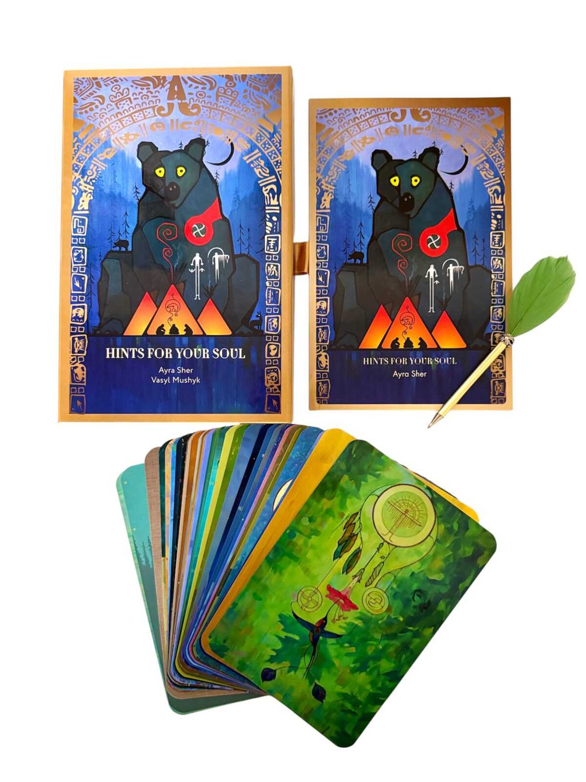 “Consejos para tu Alma” es una colección de cartas metafóricas espirituales llenas de mensajes poéticos y la sabiduría de los animales totémicos. Las cartas ayudan a despertar la intuición, promueven el autodescubrimiento, brindan guía espiritual e inspiran la transformación personal. Incluye una caja rígida premium, una guía, una pluma y versiones en 4 idiomas.
